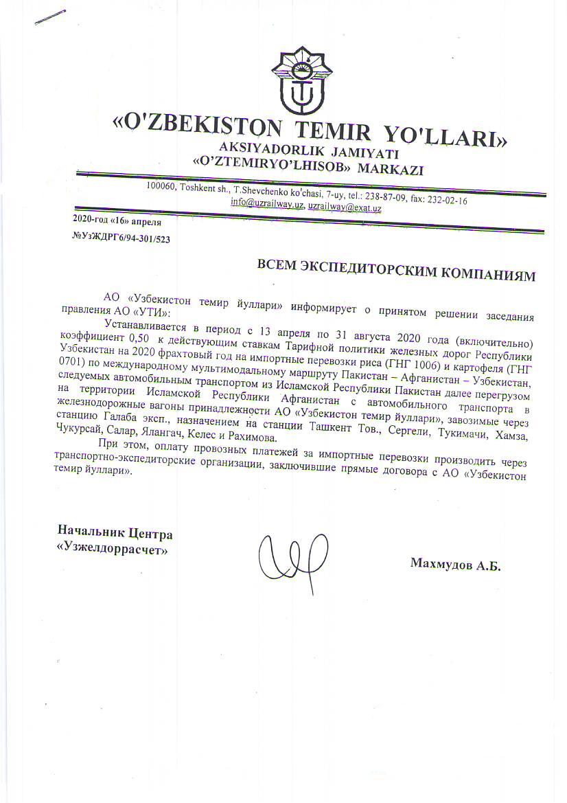 прямые договора с АО «Узбекистон темир йуллари».