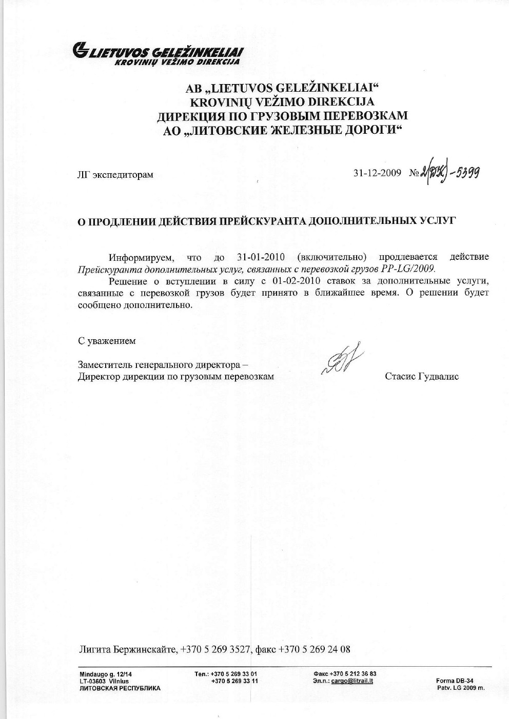 | AB „LIETUVOS GELEŽINKELIAI" KROVINIŲ VEŽIMO DIREKCIJA ДИРЕКЦИЯ ПО ГРУЗОВЫМ ПЕРЕВОЗКАМ АО „ЛИТОВСКИЕ ЖЕЛЕЗНЫЕ ДОРОГИ"