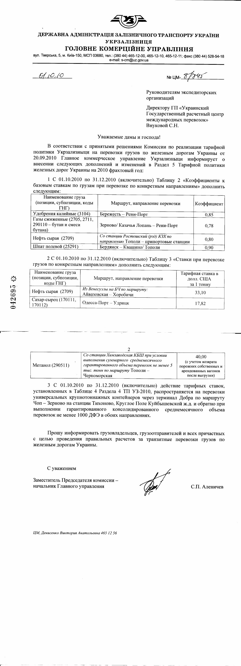 | ДЕРЖАВНА АДМIСТРАЦIЯ ЗАЛI3НИЧНОГО ТРАНСПОРТУ УКРАЇНИ УКРЗАЛI3НИЦЯ ГОЛОВНЕ КОМЕРЦIЙНЕ УПРАВЛIННЯ