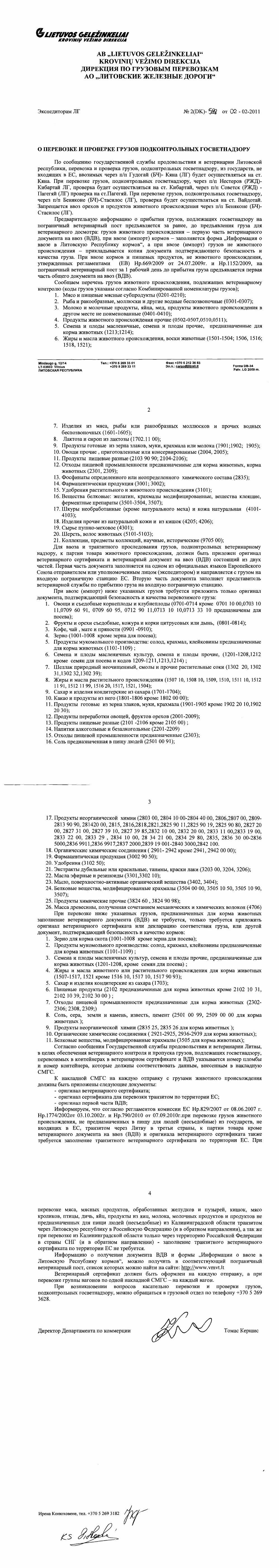 | AB „LIETUVOS GELEŽINKELIAI" KROVINIŲ VEŽIMO DIREKCIJA ДИРЕКЦИЯ ПО ГРУЗОВЫМ ПЕРЕВОЗКАМ АО „ЛИТОВСКИЕ ЖЕЛЕЗНЫЕ ДОРОГИ" Экспедиторам ЛГ № 2(DK)- 588 от 02-02-2011