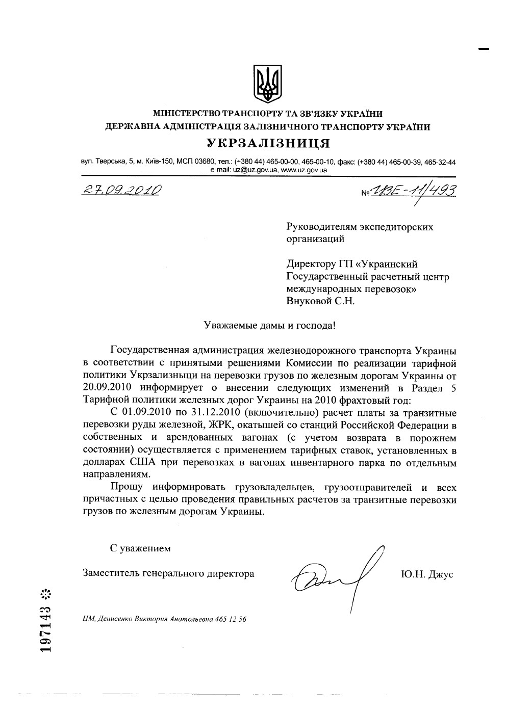 27.09.2010 № ЦЗЕ-11/493