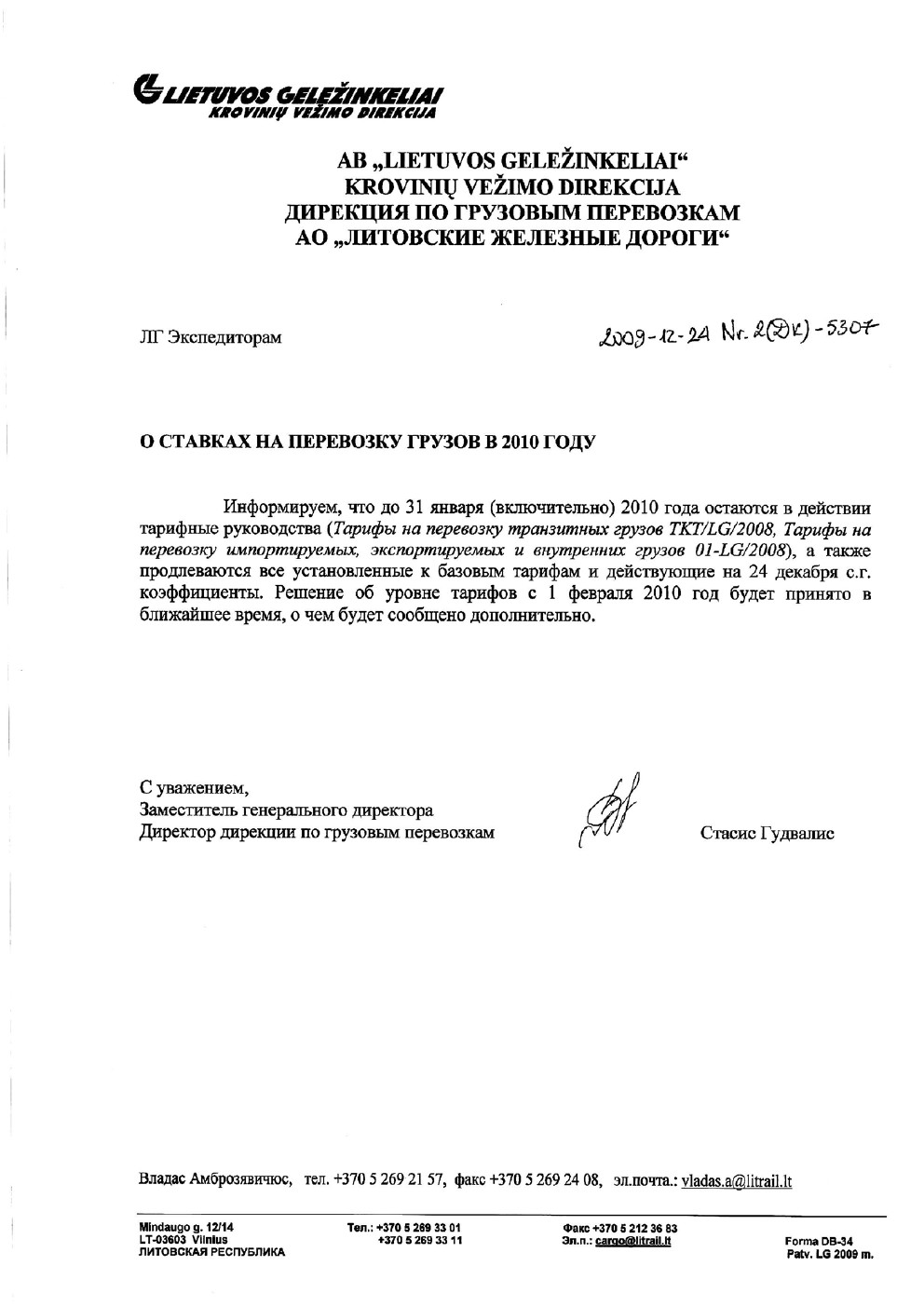 ЛГ Экспедиторам 2009-12-24 № 2 (ДК)-5307